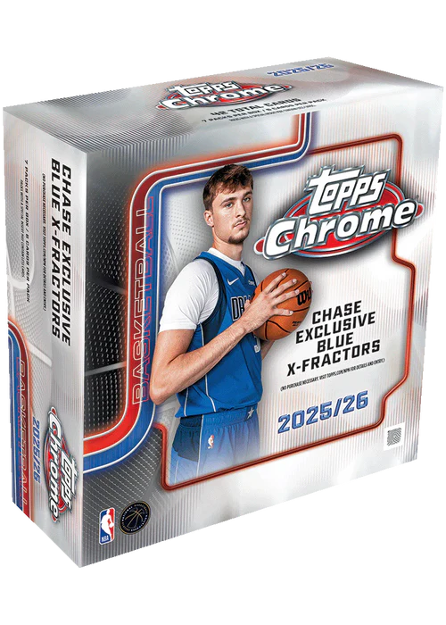 The 2025-26 Topps Chrome Basketball Mega Box offers a vibrant, accessible way to collect top rookies (Cooper Flagg, Dylan Harper), stars (LeBron, Curry, Wembanyama), and legends, highlighted by exclusive Blue X-Fractors and Raywave Refractors, plus new inserts like Activators, Serenity, and rare SSPs (Glass Canvas, Helix) in a chromium finish. Expect a rainbow of parallels, including unique X-Fractors and chase autographs/relics, bridging retail fun with hobby excitement for set builders and parallel hunters.