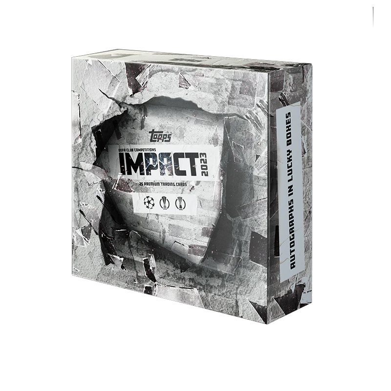 Topps UEFA Club Competitions (UCC) Impact 2023 is a limited-run, online-exclusive set celebrating breakout players of the 2022-23 season with unique, "Metal Universe"-inspired designs featuring rookies and new stars offering parallels numbered to /99, /49, /25, /10, /5 or 1/1 and autographs in lucky boxes.